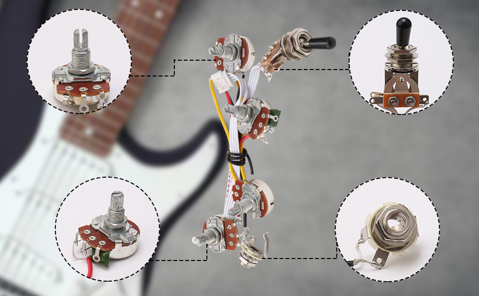 This Electric Guitar Wiring Harness Kit is a precision-engineered replacement set tailored for SG guitars, featuring a 3-way toggle switch, high-quality 500K potentiometers, and durable anti-aging wiring. Lightweight and easy to install, it comes complete with all necessary hardware for a seamless upgrade that enhances your guitar’s tonal versatility and reliability.