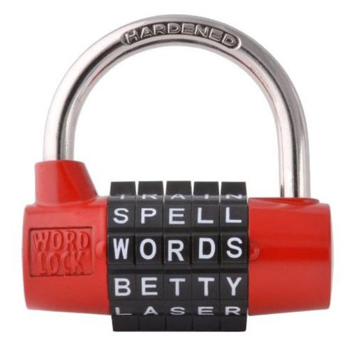 WordLock Trunk Combination Lock. The WordLock Trunk Combination Lock is the best trunk lock on the market. Instead of numbers, you use words as your combination. Create your own word combination and set it. You can change the word combination as often as you like, and its easy to do. This lock provides 100,000 word and letter combinations. Words are easy to remember, numbers are easy to forget. (Ships inside your Rhino TrunkTM [sold separately] at no extra shipping). Dimensions: 2.75"L x 1.25"W x 0.5"H Weight: 1 lb.