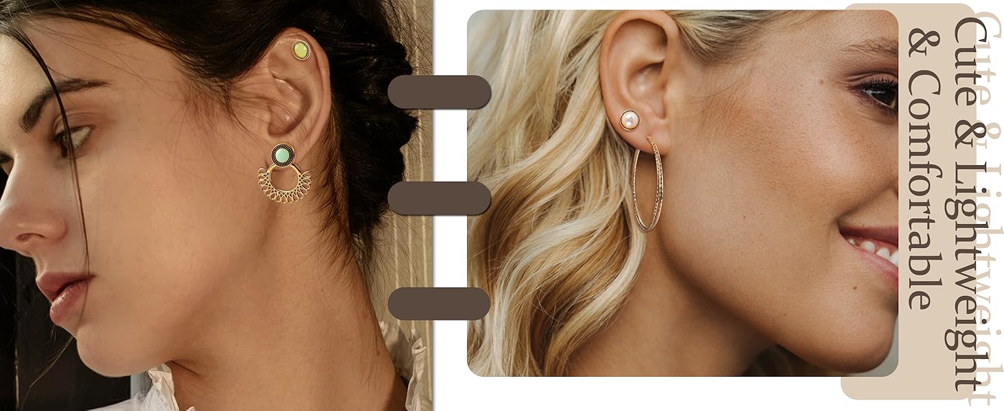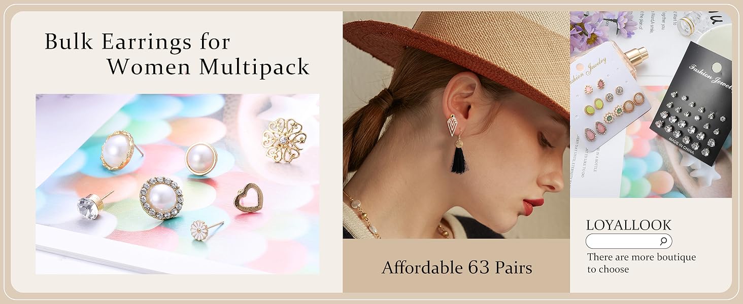LOYALLOOK61-63 Pairs Assorted Multiple Stud Earrings for Women Simple Cute Flower Big Hoop Earrings Moon Geometric Leaf Arrow Bow CZ Ball Heart Faux Pearl Earrings SetClimeCo Certified