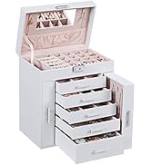 Esta es una caja de joyería elegante. Para alguien que posee muchas joyas, fue una gran adición. El único inconveniente es que no tiene suficientes compartimentos para collares. El soporte para brazaletes y pulseras en la bolsa en frente del espejo también es un poco pequeño. Pero me gusta tener la mayoría de mis joyas en un solo lugar, así que esto ciertamente cumple su propósito.