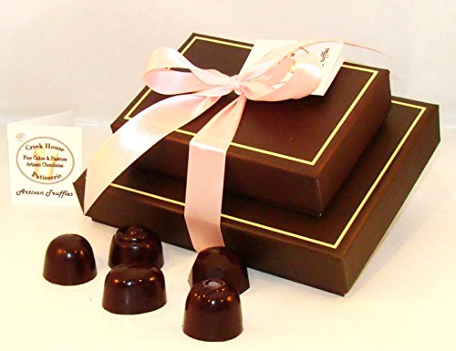 A special Non Dairy Vegan truffle collection for that special person. 18 of our best selling Vegan truffles. 6 pieces Double Dark Domes, 3 Pieces each: Berry Berry, Dark Espresso, Chili Mango, Orange Coconut. Beautifully gift boxed in two high quality chocolate brown boxes, double faced satin ribbon and gift tag. We will be happy to include a gift message on our enclosed packing list, if desired.