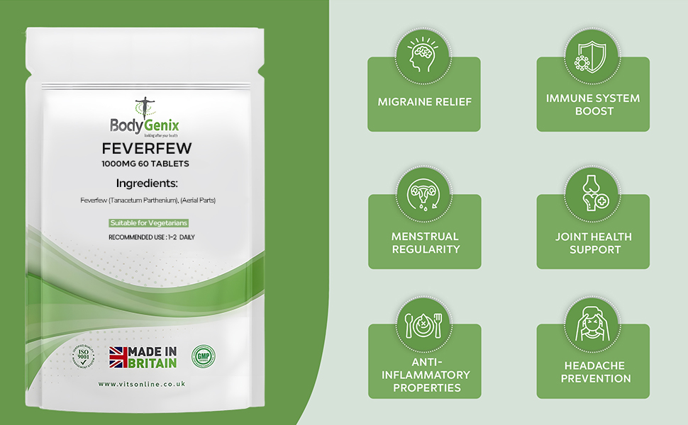 Feverfew 1000mg Tablets Headaches Relief Joints Health Anti Inflammatory Natural | Desertcart Cyprus