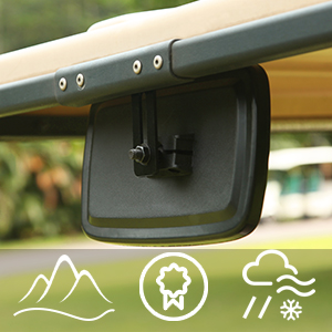 Works as expected and the install was simple. My cart did not come with a rear view mirror so this really helps with visibility!