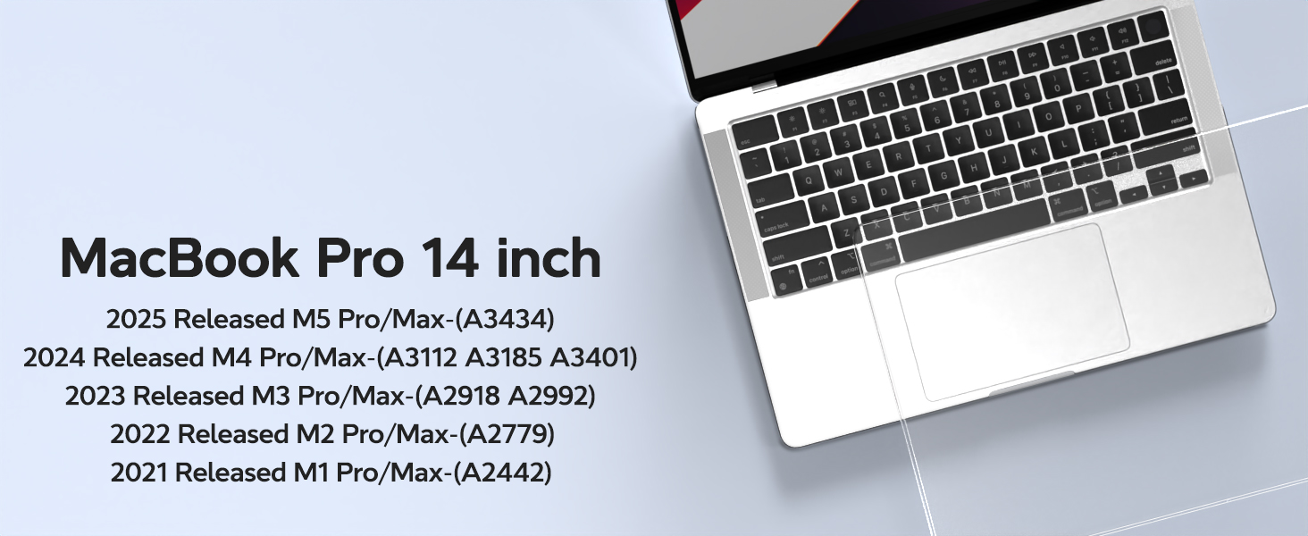The B BELK case is a precision-engineered, crystal-clear hard shell designed exclusively for the MacBook Pro 14-inch models from 2021 to 2025, compatible with all M-series chips. It offers full device protection with durable materials, vented cooling, and a two-piece snap-on design for easy installation and full port access. The package includes a keyboard cover and screen protector, delivering comprehensive defense while maintaining the sleek aesthetic of your MacBook.