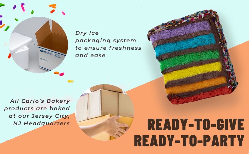 Carlo’s Cake Boss Chocolate Fudge Rainbow Cake, Small 6” Size - Serves 6 to 8 - Birthday Cakes and Treats for Delivery - Ideal Gift for Women, Men and Kids - Baked Fresh Daily, Delivered Frozen in Dry Ice