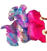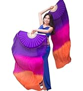 Nimiman Women’s Silk Belly Dance Fans Veil set features hand-made, 100% real silk veils with a natural bamboo frame, measuring 180x90 cm. Designed for durability and vibrant color flow, these lightweight fans enhance any dance performance or festive occasion with their striking gradient hues and expertly finished edges.