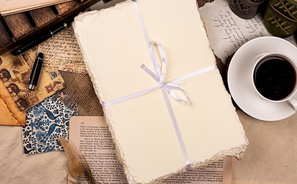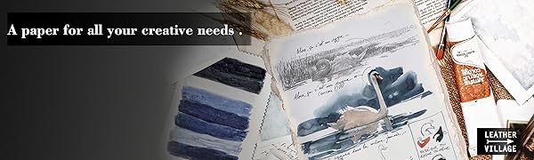 Leather Village Watercolor Paper offers 50 sheets of premium 8x6 inch, 150 GSM thick, off-white, handmade cotton paper with vintage deckle edges. Designed for mixed media use, it supports wet and dry mediums with acid-free, bleedproof durability, making it ideal for artists seeking both quality and longevity in their creative keepsakes.
