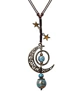 The MINACHI Vintage Bohemian Hippie Necklace features a detailed crescent moon pendant with turquoise ceramic beads on a rust-resistant alloy cord. Lightweight and adjustable, it offers versatile styling options perfect for casual wear, festivals, or gifting to boho-chic enthusiasts.