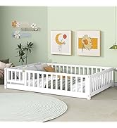 I had wanted a floor bed to give my daughter independence. I ordered the pink full size bed for my daughter and am in the process of transitioning her to her new room so I wanted something I could lay on with her while getting her used to it or if she gets sick, etc. The pink is definitely more of a light bubble gum pink instead of mauve but it is still cute. The frame was easy to put together and feels solid when I am getting in and out of it but the slats that come with it to support the mattress are thin, wobbly, and not very sturdy so I needed to reinforce them to be able to hold both our weights and a 70lb 7inch eco kids avocado mattress (great mattress by the way! Hard enough for a toddler but doesn’t feel like I’m laying on bricks either). I went to my local hardware shop and had them help me make two 73in (legth) x 3in (width) x 2.25in (height) pieces of solid wood and put those underneath the existing slats touching the floor, anti parallel to the existing slats along the length of the bed. Note that height was the most crucial part but not easy to make since most slats only come in up to 2 inches so we ended up nailing two smaller pieces of wood together to make up the 2.25inch for each side. I slid those under the existing slats, one on each side of the bed. Then I purchased Greaton, 0.75-Inch Vertical Wooden Bunkie Board/Bed Slats with Cover, Enhance Mattress Support, Full. Put that on top of the existing slats and then the mattress on top of it all (with waterproof topper of course). It feels very solid now and supports my weight and my husbands great so we can get our daughter in/out the bed or lay next to her or if she jumps on the bed. I put sticky traps along the perimeter on the floor to o deter any bugs since it is a floor bed. The avocado full size mattress we got fits fairly well on the sides but there is some room at the corners. I ended up buying two of these to cover all the edges: BreathableBaby Breathable Mesh Liner for Full-Size Cribs, Classic 3mm Mesh, White (Size 4FS Covers 3 or 4 Sides). They help cover the corners too and keep her arms/legs from getting stuck in between the rails. Then I ordered Oodles of Noodles Deluxe Foam Pool Swim Noodles (6 Pack) and put those on the tops of the rails so she can’t hit her head. They are not too big and fit perfectly. Note she can easily get out of this bed but the point was never to keep her locked in but rather just to keep her from rolling in her sleep which, with all the modifications I made, she still has a good 6” of railing to prevent her from rolling off the edge in her sleep which is enough. We didn’t attach on the little door but I will keep it handy if she starts rolling the length of the bed in her sleep.