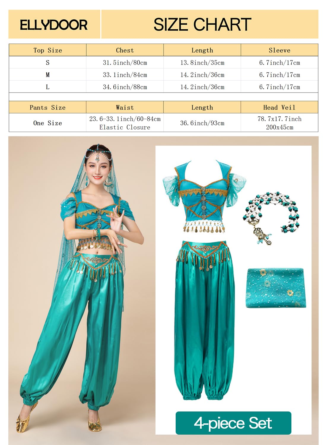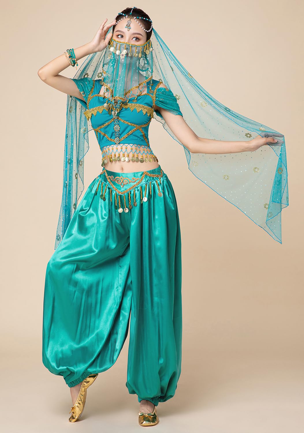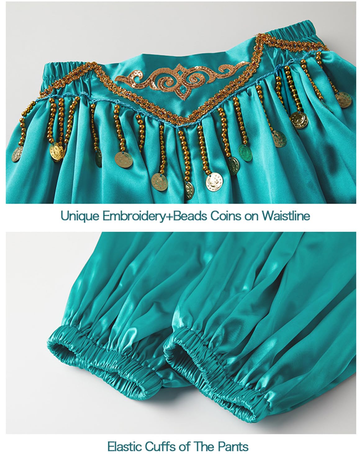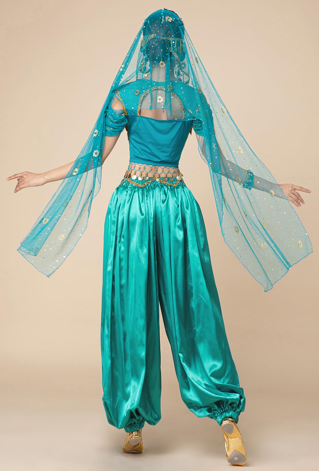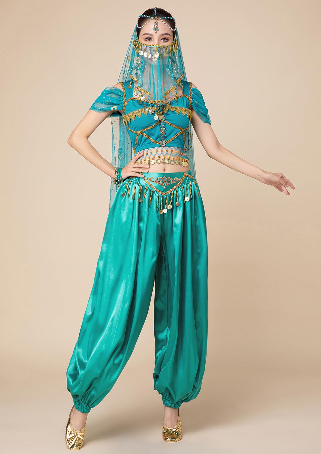 Arabian Jasmine Costume for Women Princess Dress Up Halloween Belly Dance Top Pants 4 Piece Outfit