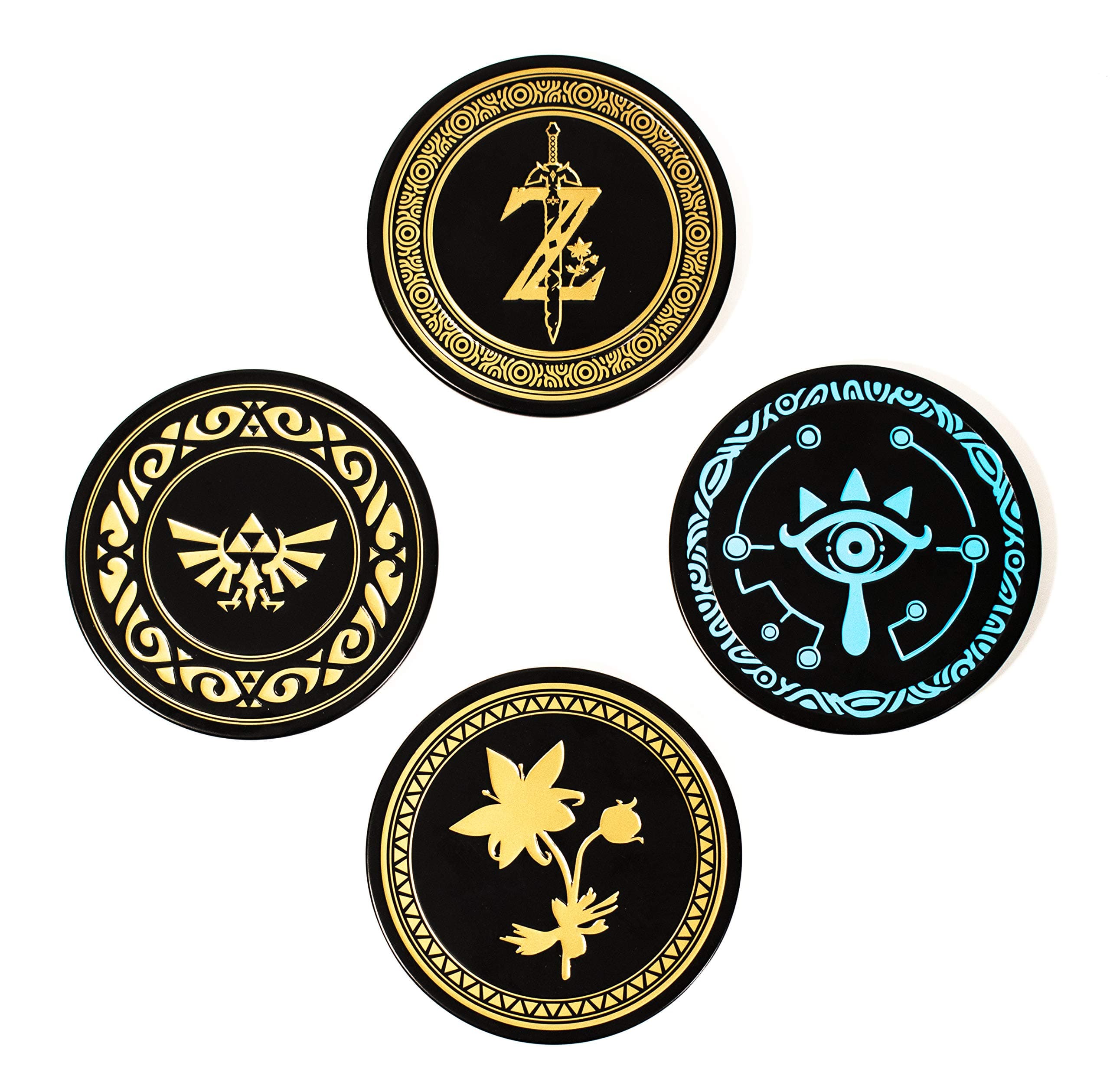 This set of 4 officially licensed Legend of Zelda metal coasters features embossed Breath of the Wild designs and cork backing to protect surfaces. Lightweight and durable, they make a perfect gift for gamers and collectors alike.