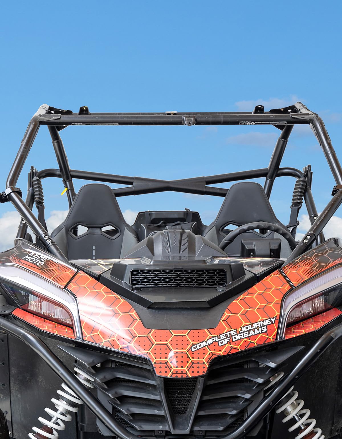 The KEMIMOTO UTV Turbo Hood Scoop is a precision-engineered front hood accessory designed exclusively for select CFMOTO ZForce 950 models (2020-2024). Made from lightweight, impact-resistant polypropylene, it features large removable mesh vents that significantly enhance engine cooling. Its sleek, curved design prevents rainwater accumulation, while the easy, no-drill installation ensures a quick upgrade to your UTV’s performance and aesthetics.