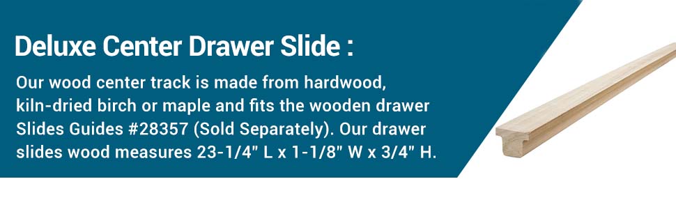 The Rockler Center Track for Slide Glides is a premium hardwood center drawer slide crafted from kiln-dried birch or maple. Measuring 23-1/4” long, it fits base cabinets up to 24” deep and can be easily cut to size. Optional self-lubricating plastic glide guides are available to enhance drawer alignment and smoothness. This product offers a durable, customizable, and easy-to-install solution for professional-quality drawer performance.