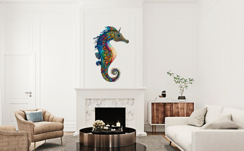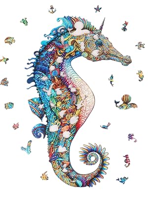 Mys Aurora Unique Wooden Jigsaw Puzzles - Unicorn Seahorse, 500 Pcs Royal Size 14.6" x 23", Animal Shaped Wood Puzzle, Beautiful Package, Best Gift for Adults and Kids, Family Game