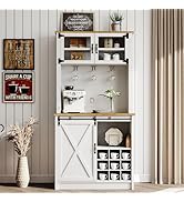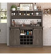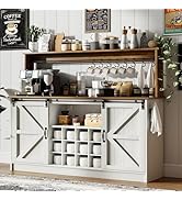 The 4ever2buy Farmhouse Coffee Bar Cabinet is a 55" wide, 50" tall wood storage unit featuring sliding barn doors, 8 hanging hooks, 12 racks, and a thick 15.75" deep countertop. Designed for versatile use in kitchens, living rooms, or dining areas, it offers 40% more storage capacity than traditional cabinets. Its rustic gray finish with black metal hardware blends seamlessly with farmhouse and industrial decor styles. Easy to assemble with detailed instructions and backed by professional customer support.