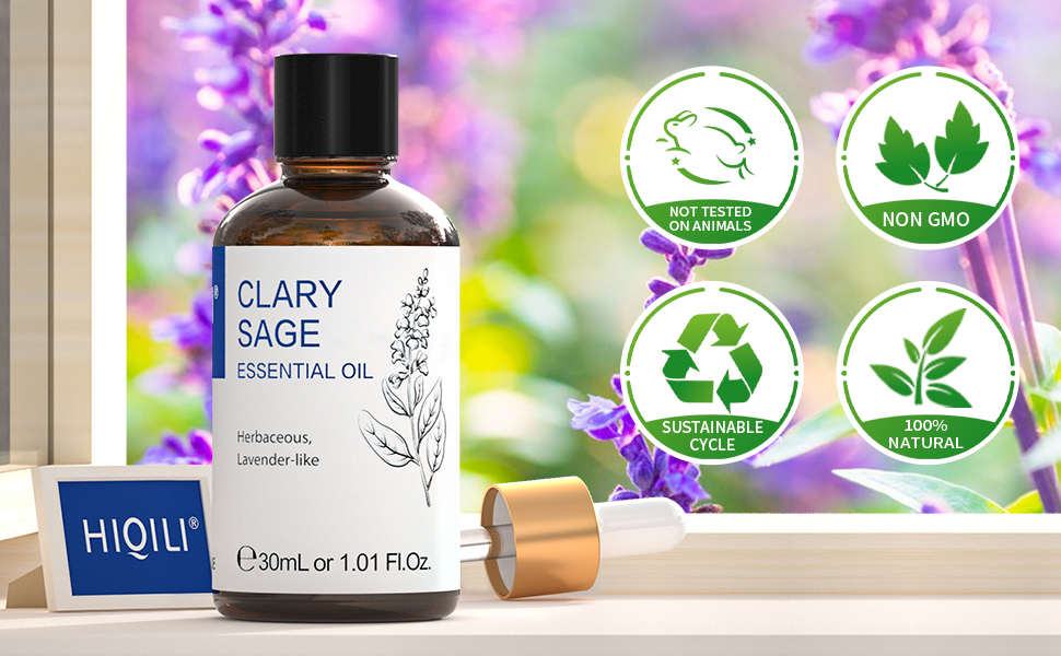 HIQILI Clary Sage Essential Oil 30ml 100% Natural Aromatherapy Oil for Face, Candle Making, Diffuser, Skin and Hair, 30ml