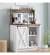 The 4ever2buy Farmhouse Coffee Bar Cabinet is a stylish and multifunctional storage solution featuring durable thickened wood panels, 2 sliding barn doors with adjustable shelves, 8 hooks, and 12 wine racks. Measuring 55”W x 50”H x 15.75”D, it offers ample space for coffee and wine essentials while adding a sophisticated farmhouse aesthetic to any living, dining, or kitchen area. Easy to assemble with professional customer support, it’s designed for millennials seeking both elegance and practicality in home entertaining.
