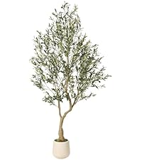 Wow! This tree is so nice! After shopping in some nicer stores and seeing the poor quality for twice the price I decided to take a chance on this one. I bought the 7 ft. tree. It was packaged very well! The base is very heavy so the tree won’t fall over. The trunk of the tree is very realistic. It looks like a grayish established olive tree trunk. The leaves are very realistic with one side being green and the other a whitish color. Olives are black and realistic as well. You can turn the leaves and slide them on the branch to make them look more random and realistic. The branches are wired well so that you can bend them into a more realistic shape as I did to mine. It assembled very easily with metal square sheaths that slide into one another. They are all well labeled for correct positioning. Very sturdy and well made. Extremely impressed and happy with this purchase.