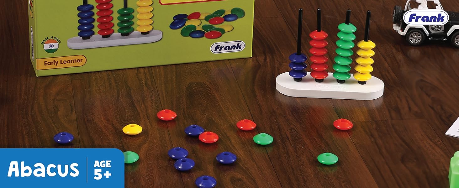 The Frank Abacus Number Counting Tool is a vibrant, durable educational toy designed for kids 5 and up. Featuring 4 rods and 40 multicolored beads, it promotes number recognition, logical thinking, and fine motor skills without batteries. Complete with a Parent/Teacher Guide and crafted from safe materials, it’s ideal for both home and classroom use, making math learning interactive, fun, and effective.