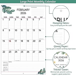 - 🌿 PRACTICAL & STYLISH CALENDAR – Featuring hanging hole for hanging on the wall or placing on desk, this 12 monthly calendar adds a bright view to your home, office, or classroom. A good reminder for 2026 to make you more efficient, effective and productive.