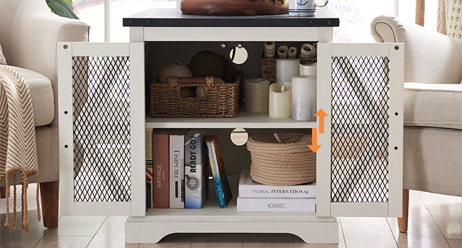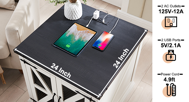 The JXQTLINGMU Farmhouse End Table blends rustic farmhouse warmth with industrial edge, featuring a spacious 24" tabletop, integrated charging station (2 AC outlets + 2 USB ports), and a large adjustable storage cabinet behind a stylish mesh barn door. Crafted from durable engineered wood and metal, it supports heavy loads and keeps your living room, bedroom, or office organized and connected. Easy to assemble with thoughtful cable management, this end table is a must-have for the modern professional seeking both style and function.