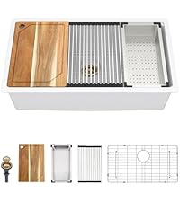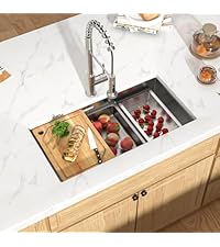 The Talllor 32 Gold Undermount Kitchen Sink combines premium 16-gauge T-304 stainless steel with a luxurious gold finish and a multifunctional workstation design. Its spacious single bowl and integrated accessories streamline meal prep, while sound-absorbing technology ensures quiet operation. Perfect for modern kitchens seeking durability, style, and efficiency in one sleek package.