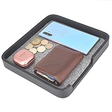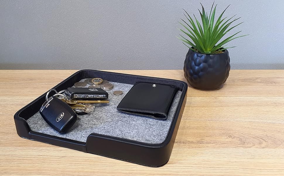 The Connected Essentials Valet Tray is a multipurpose organizer designed to declutter your space while providing a stylish and protective home for your daily essentials. Measuring 220x230mm, it fits perfectly on any surface and features a durable vegan leather exterior with a soft felt lining to keep your items safe. Available in two sizes, this tray is the ultimate solution for maintaining order in your home or office.