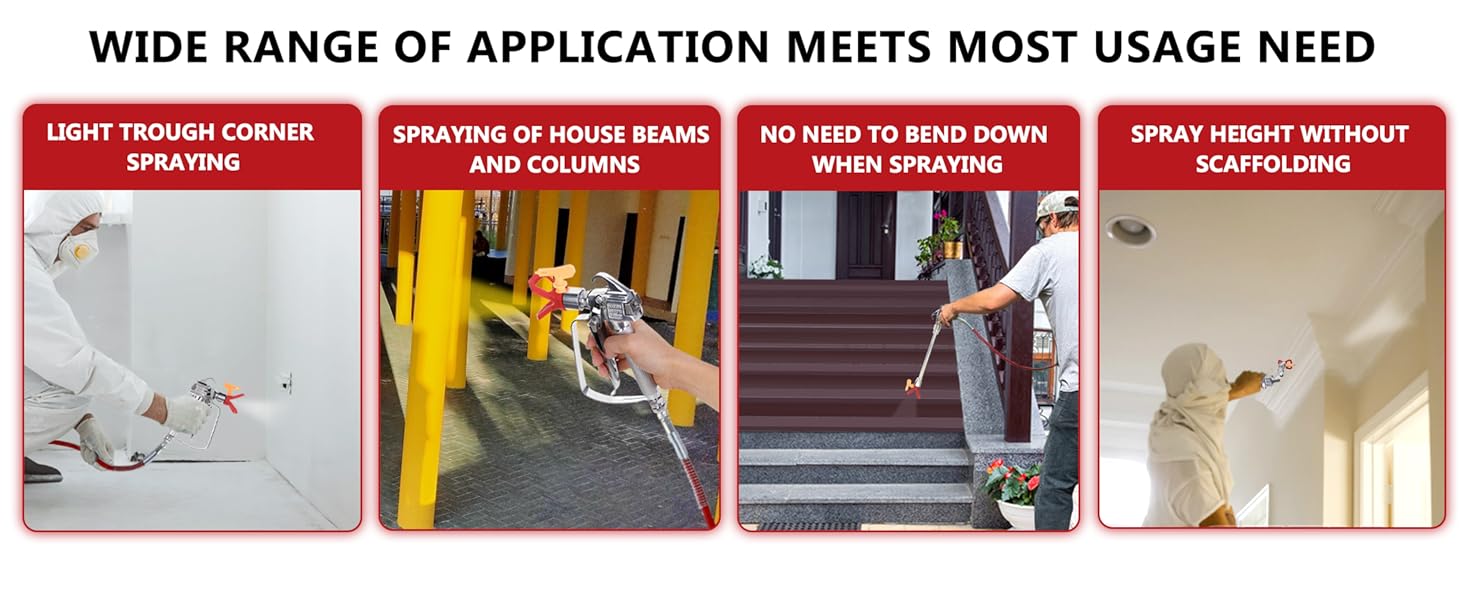 The DUSICHINDUS-036 Airless Paint Spray Gun is engineered for high performance, boasting a maximum pressure of 3600 PSI. It features a reversible 517 tip and a universal tip guard, making it compatible with most Titan and Graco airless paint sprayers. The durable forged gun head and integrated 100 mesh filter ensure longevity, while the four-finger trigger provides effortless control for precision painting.